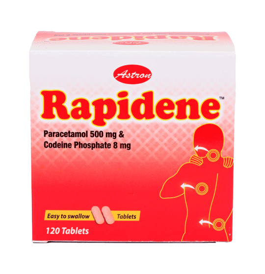 Rapidene Paracetamol and Codeine Tablets 500mg and Codeine phosphate 8mg 120 Tablets
